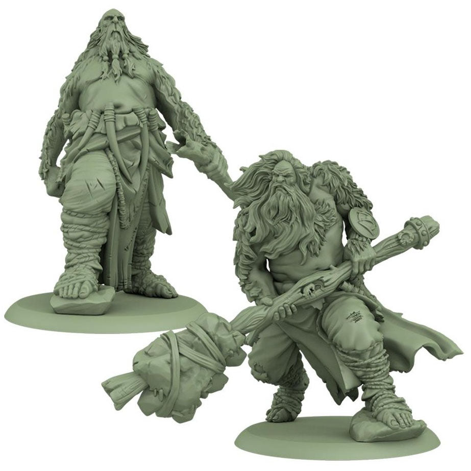 The Savage Giant Unit Box for the A Song of Ice and Fire: Tabletop Miniatures Game gives Free Folk commanders two huge figures to add to their forces. The Savage Giant is both resilient and deadly. Their Mighty Swing doesn’t allow for Defensive Saves, as it can bash through multiple troops with a single swing. The Giant is resilient, too, having five Wounds and only taking a wound for each two Hits it takes. Hurting the Giant just makes it mad, with its Mighty Swing doing more and more damage for each Wound the Giant has.