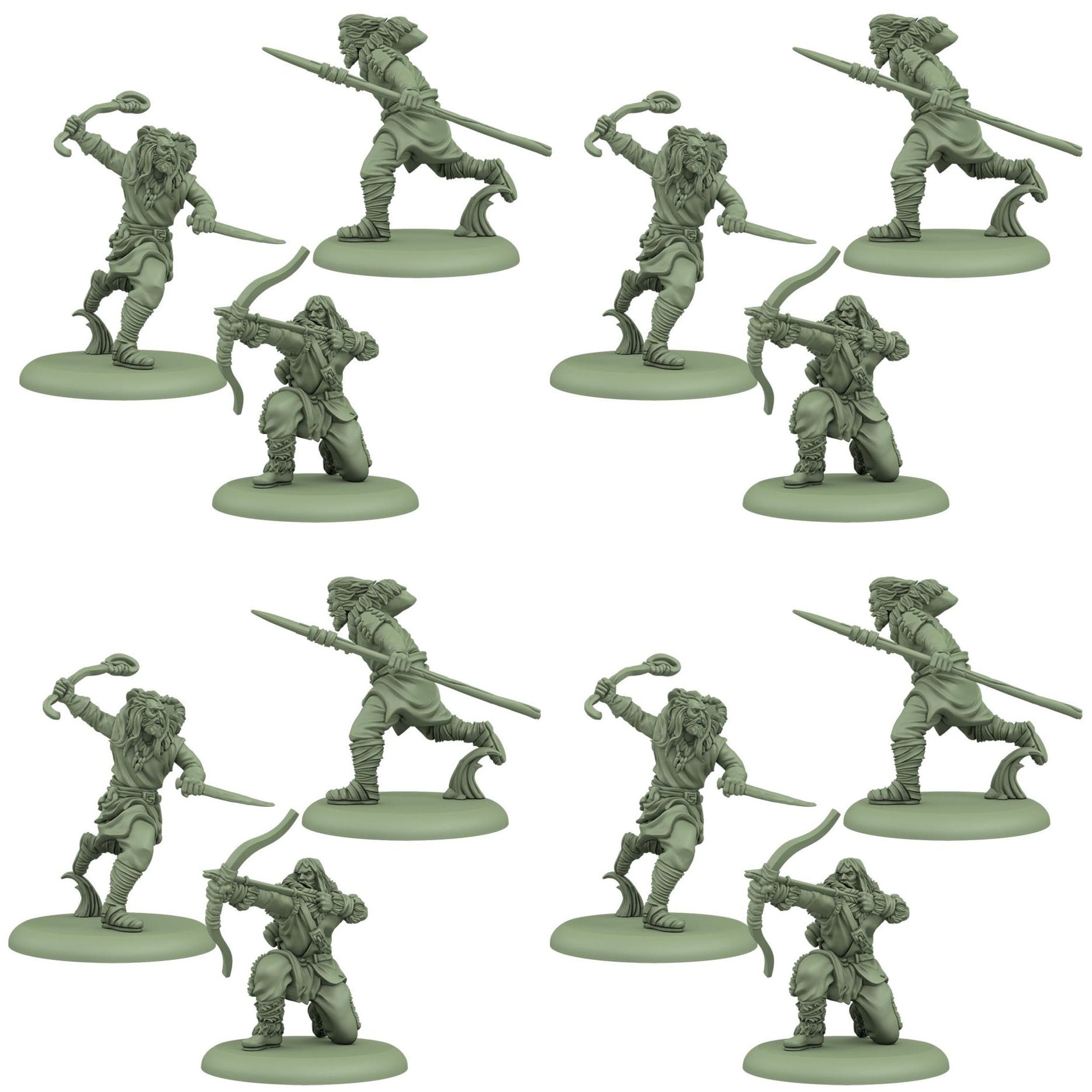 The Free Folk Trappers Unit Box gives Free Folk Commanders a new option for their armies. Lightly armed and armored, the Trappers are well-versed at harrying tactics. Able to deal wounds directly to enemy units via their Hidden Traps order, they can greatly disrupt an opponent’s plans. And being Insignificant, they aren’t worth victory points when destroyed, allowing Free Folk Commanders use them more dangerously, without worrying about giving them up to the enemy.