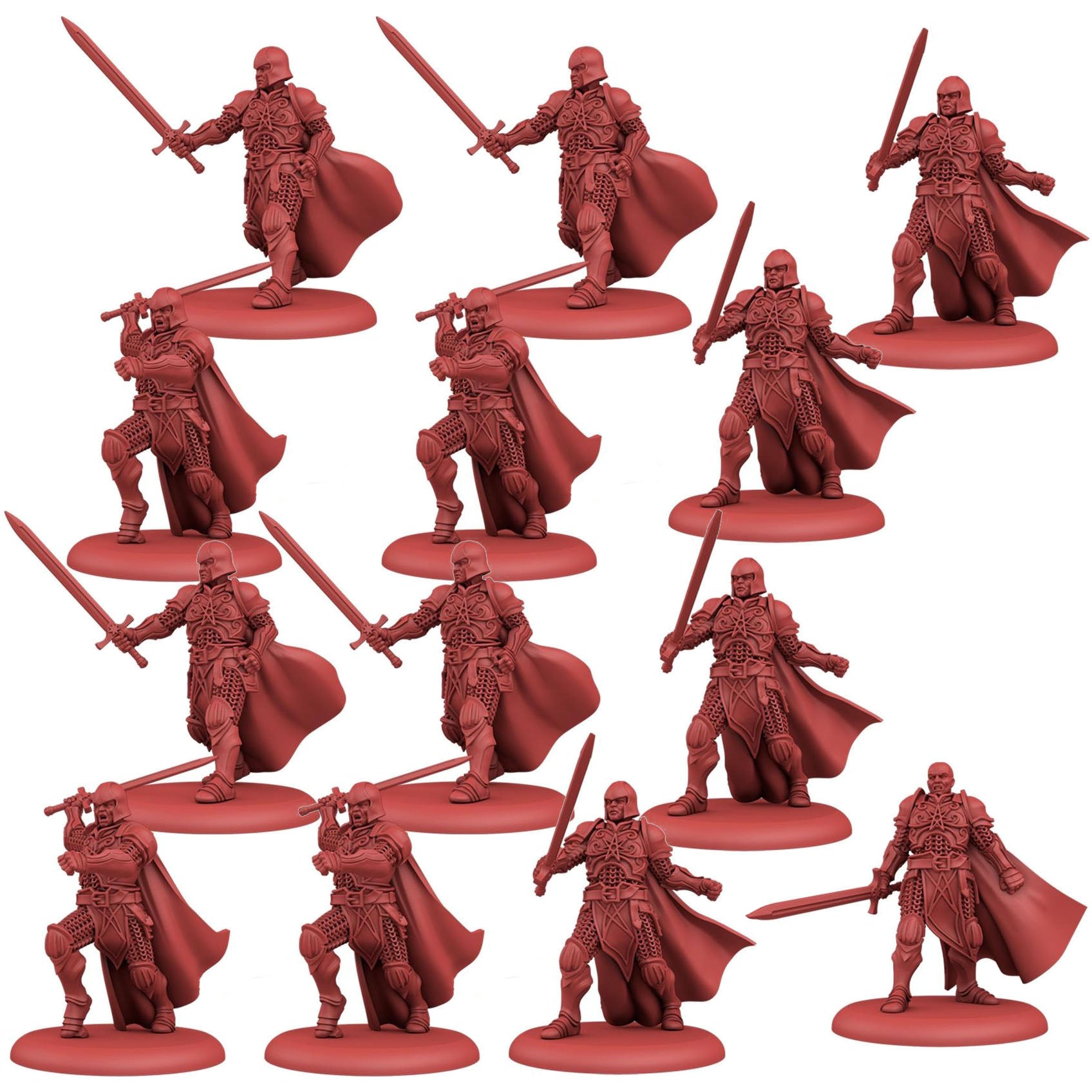 The Warrior’s Sons unit box gives Lannister players a righteous arm out on the battlefield. These highly-skilled and well-equipped soldiers are an avenging scythe, cutting down those who oppose them and using their faith to bolster themselves during combat, gaining Faith tokens that they can use for different bonuses and abilities.