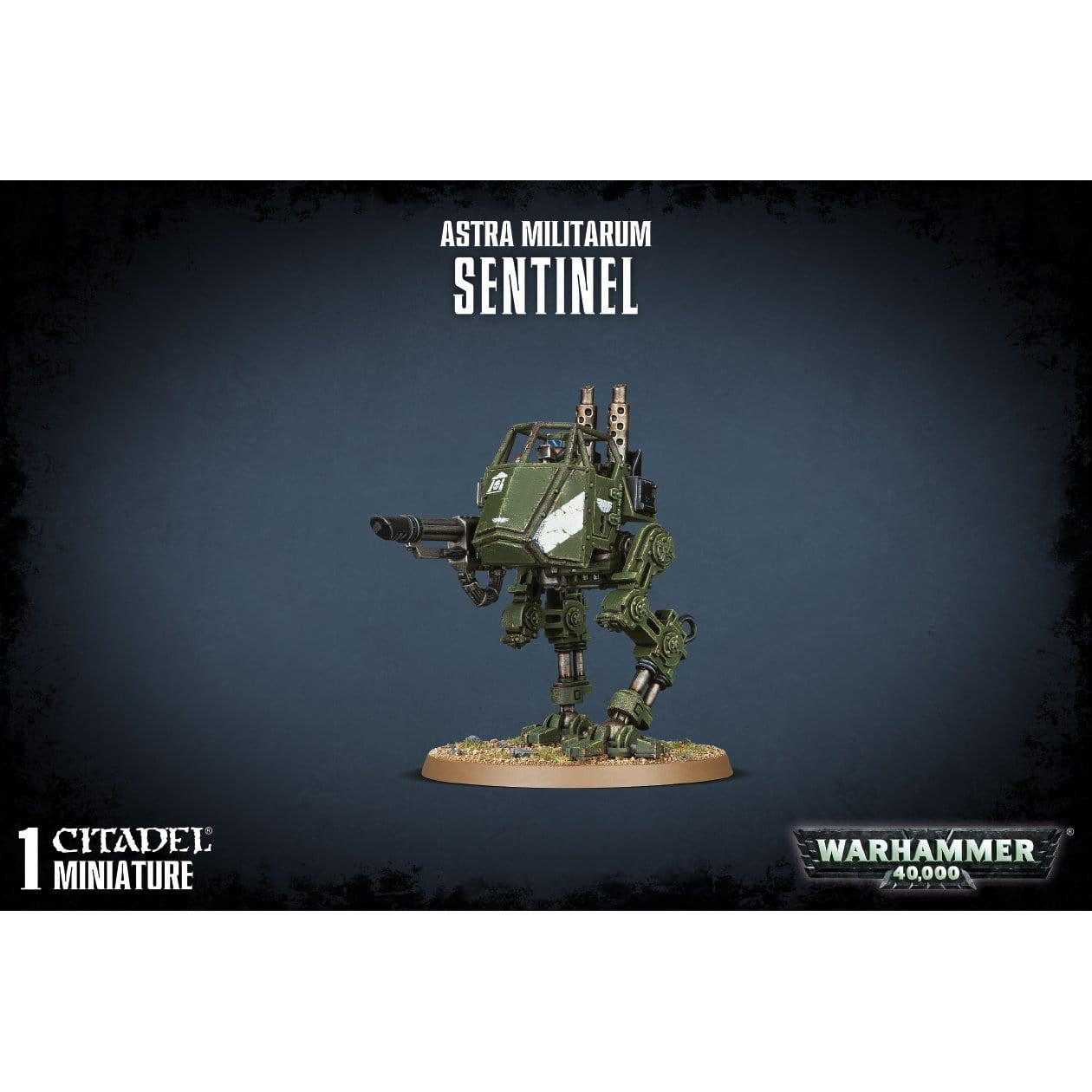 This box set contains one multi-part plastic Imperial Guard Sentinel. This 59-piece kit has fully articulated legs, allowing for endless poses; contains all of the components to make either an Armoured or Scout Sentinel, and includes two Cadian and two Catachan pilot heads. Also supplied are all of the weapon variants mountable on a Sentinel, including: a multi-laser, a heavy flamer, an autocannon, a lascannon, a plasma cannon and a missile launcher. Model supplied with a 60mm round base.