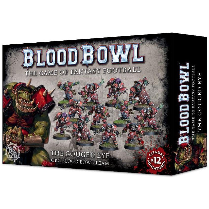 This box contains 12 ‘orrible plastic Orc Blood Bowl players – 2 blitzers, 2 throwers, 2 Black Orc blockers and 6 linemen. Supplied with extra balls, team counters, a decal sheet covered in Orc symbols and 12 32mm Blood Bowl round bases, featuring holes to slot the ball into when your miniature has possession.