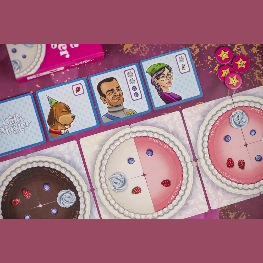 Choisissez vos ingrédients… et ceux de vos adversaires! Assemblez les Cake Master est un jeu familial ultra accessible de puzzle spatial pour 1 à 6 joueurs où tous jouent en simultané. Une méthode de draft unique où vous devez à la fois choisir votre part de gâteau, mais aussi celles de vos voisins. Portez attention à vos adversaires et leurs gâteaux afin de ne pas trop les aider! Essayer de trouver les gâteaux les plus délicieux et tentez de combler les désirs des clients les plus exigeants!