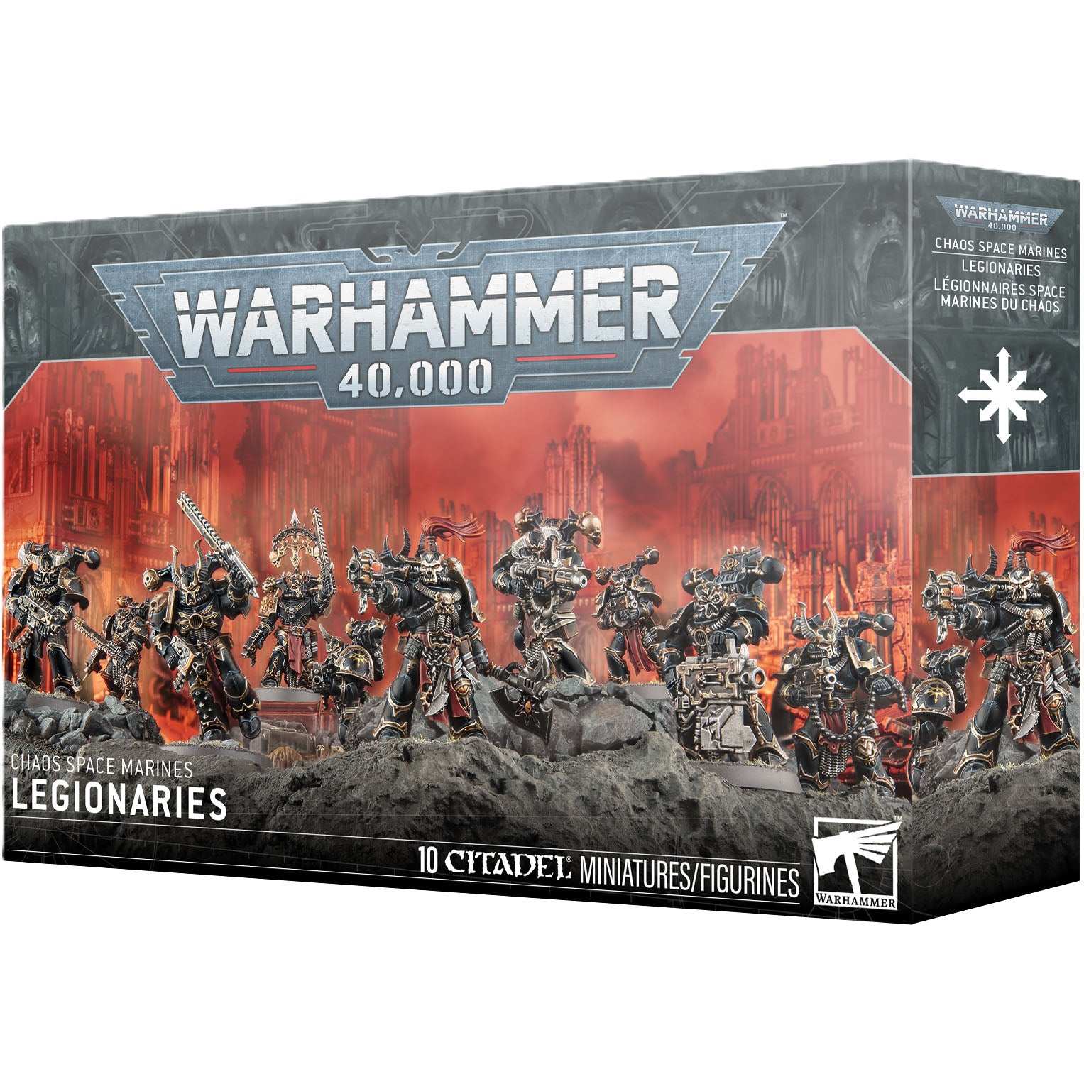 This multipart plastic kit builds 10 Legionaries, versatile infantry for your Chaos Space Marines armies in games of Warhammer 40,000. Equipped with a variety of ranged and close combat weapons, they're ready to take on any enemy and claim key objectives. The kit includes parts to build an Aspiring Champion who can be armed with a plasma pistol, boltgun, or bolt pistol, and a power fist, power axe, power sword, or power maul. He also has a choice of two different backpack toppers.