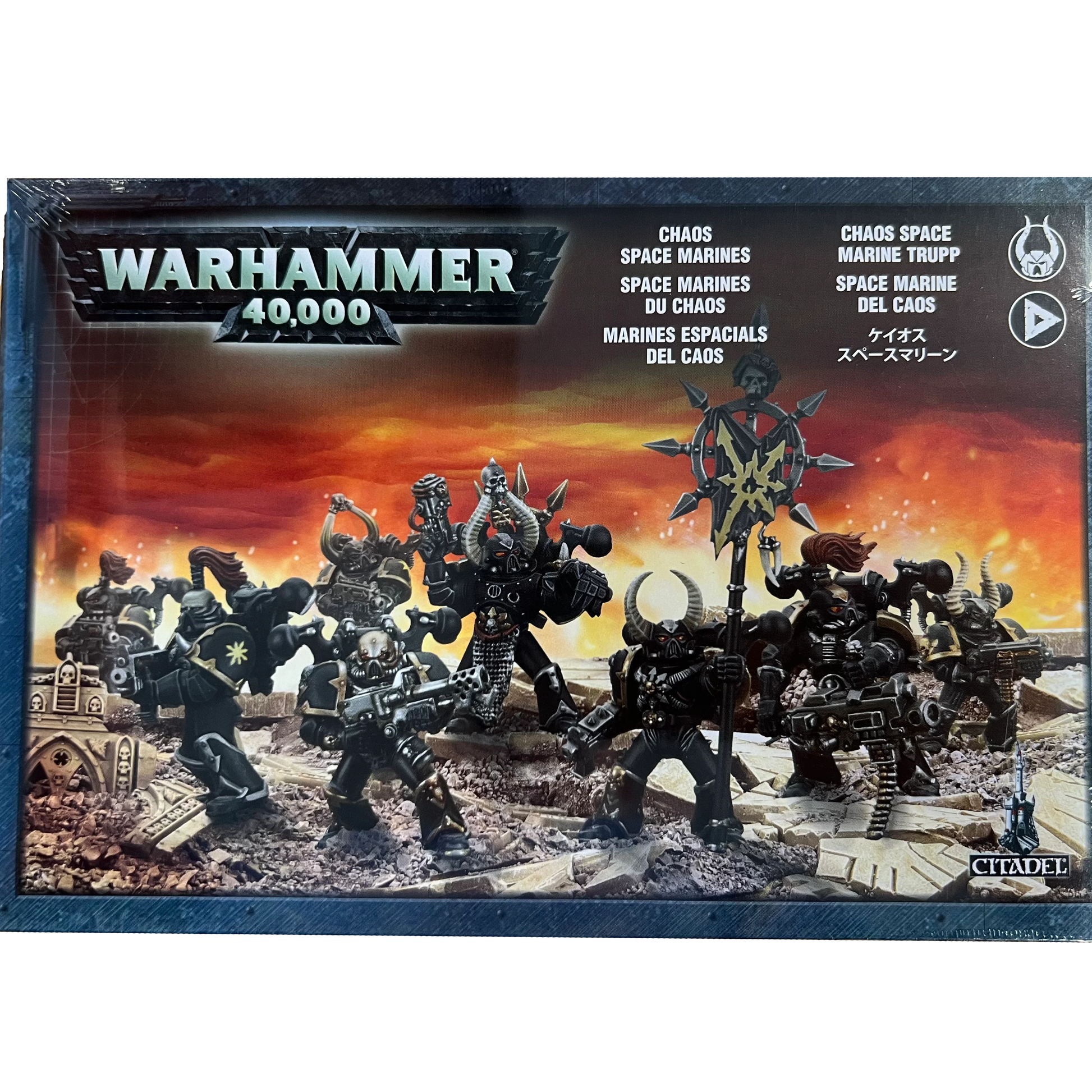 This boxed set contains 10 multi-part plastic Chaos Space Marine models, and includes options for a Champion, Icon Bearer and a variety of weapons, wargear options and extra details.