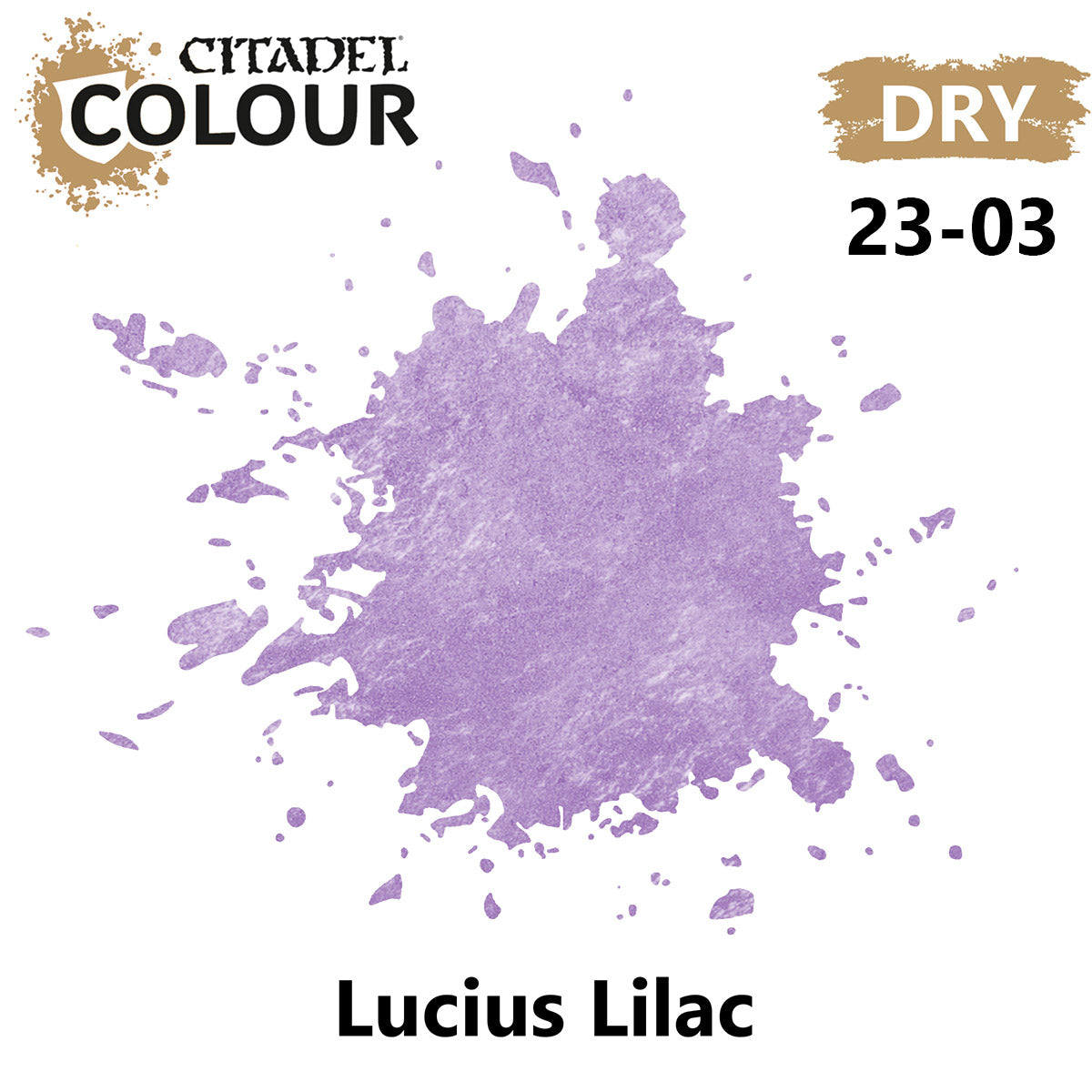Lucius Lilac is a Citadel Dry Compound.Citadel Dry Compounds are of a thicker consistency than other Citadel paints which makes them perfect for drybrushing - a handy way to pick out the details on a model or apply highlights swiftly and easily.This pot contains 12ml of Lucius Lilac one of 15 Dry Compounds in the Citadel Paint range. As with all of our paints it is a non-toxic water-based acrylic paint designed for use on plastic metal and resin Citadel miniatures.