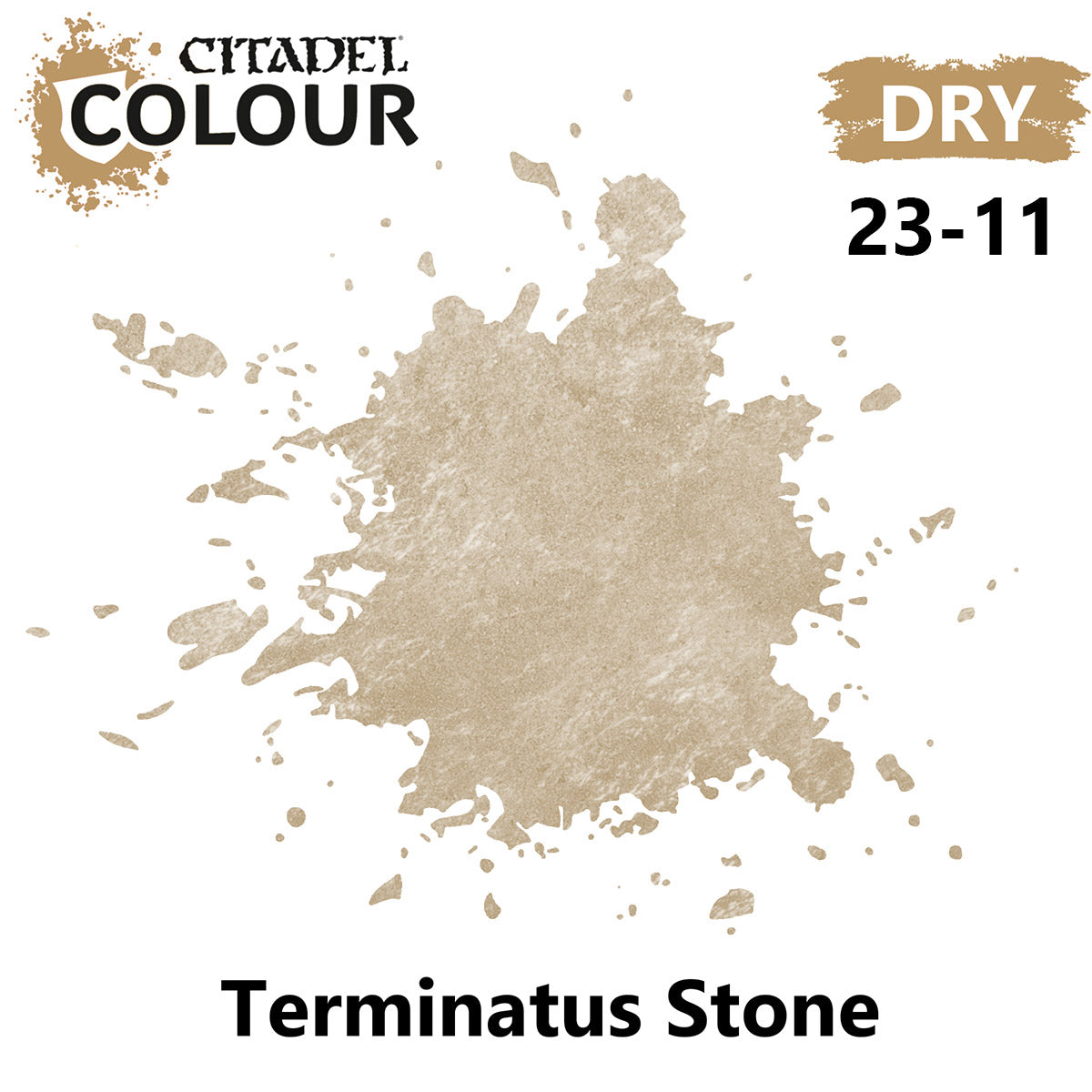 Terminatus Stone is a Citadel Dry Compound.Citadel Dry Compounds are of a thicker consistency than other Citadel paints which makes them perfect for drybrushing - a handy way to pick out the details on a model or apply highlights swiftly and easily.This pot contains 12ml of Terminatus Stone one of 15 Dry Compounds in the Citadel Paint range. As with all of our paints it is a non-toxic water-based acrylic paint designed for use on plastic metal and resin Citadel miniatures.