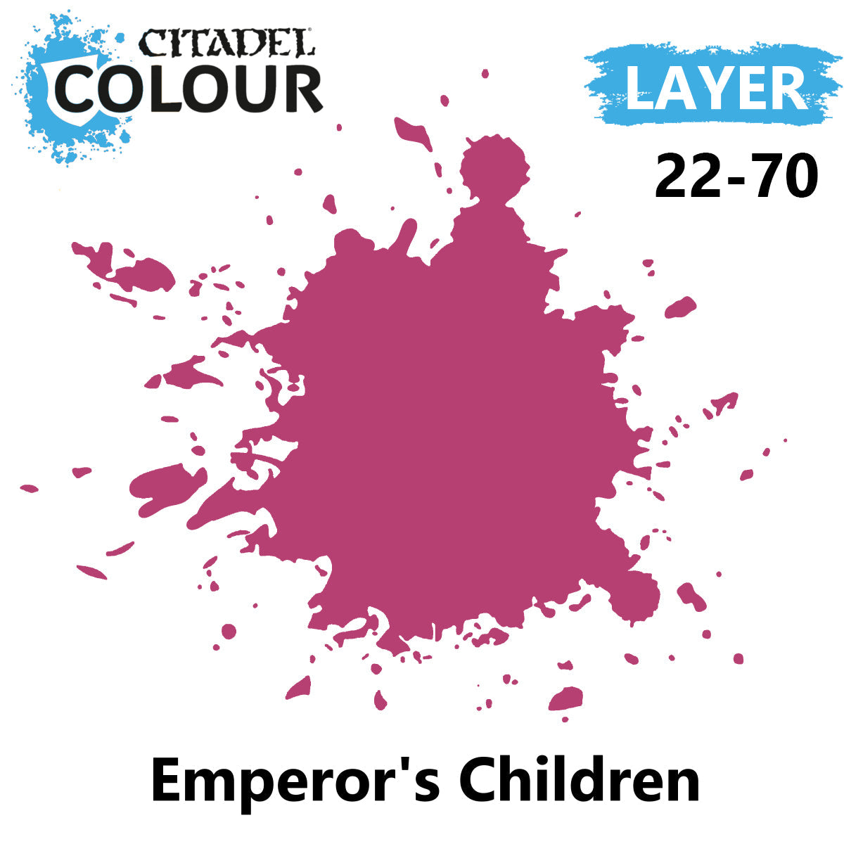 Emperor's Children is a Citadel Layer paint.Citadel Layer paints are high quality acrylic paints and with 70 of them in the Citadel Paint range you have a huge range of colours and tones to choose from when you paint your miniatures. They are designed to be used straight over Citadel Base paints (and each other) without any mixing. By using several layers you can create a rich natural finish on your models that looks fantastic on the battlefield.This pot contains 12ml of Emperor's Children one of 70 Layer paints in the Citadel Paint range. As with all of our paints it is a non-toxic water-based acrylic paint designed for use on plastic metal and resin Citadel miniatures.