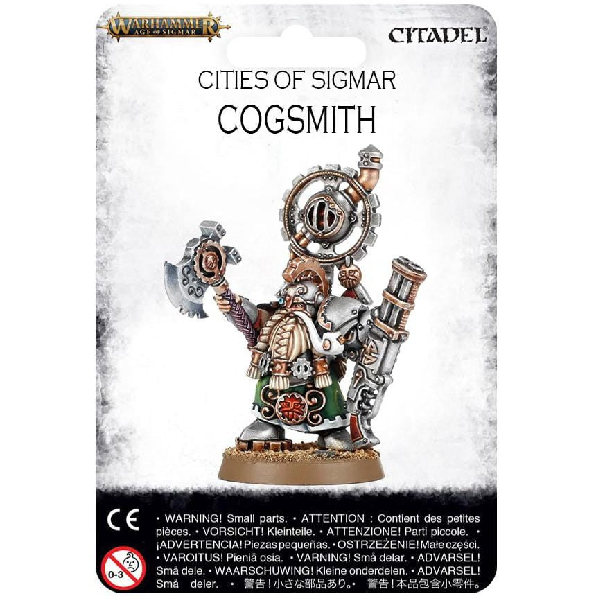 This plastic kit contains 11 components and makes one Cogsmith armed with duardin pistols, Grudge-Raker, and a cog axe.