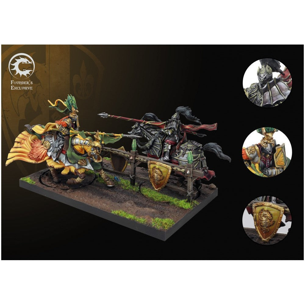 This Founder's Exclusive contains two fantastically detailed knights charging each other full tilt! Each model in the diorama can also be fielded either as a Mounted Noble Lord or as a Tourney Champion, giving you even more options to depict the flower of the Hundred Kingdoms nobility in action!