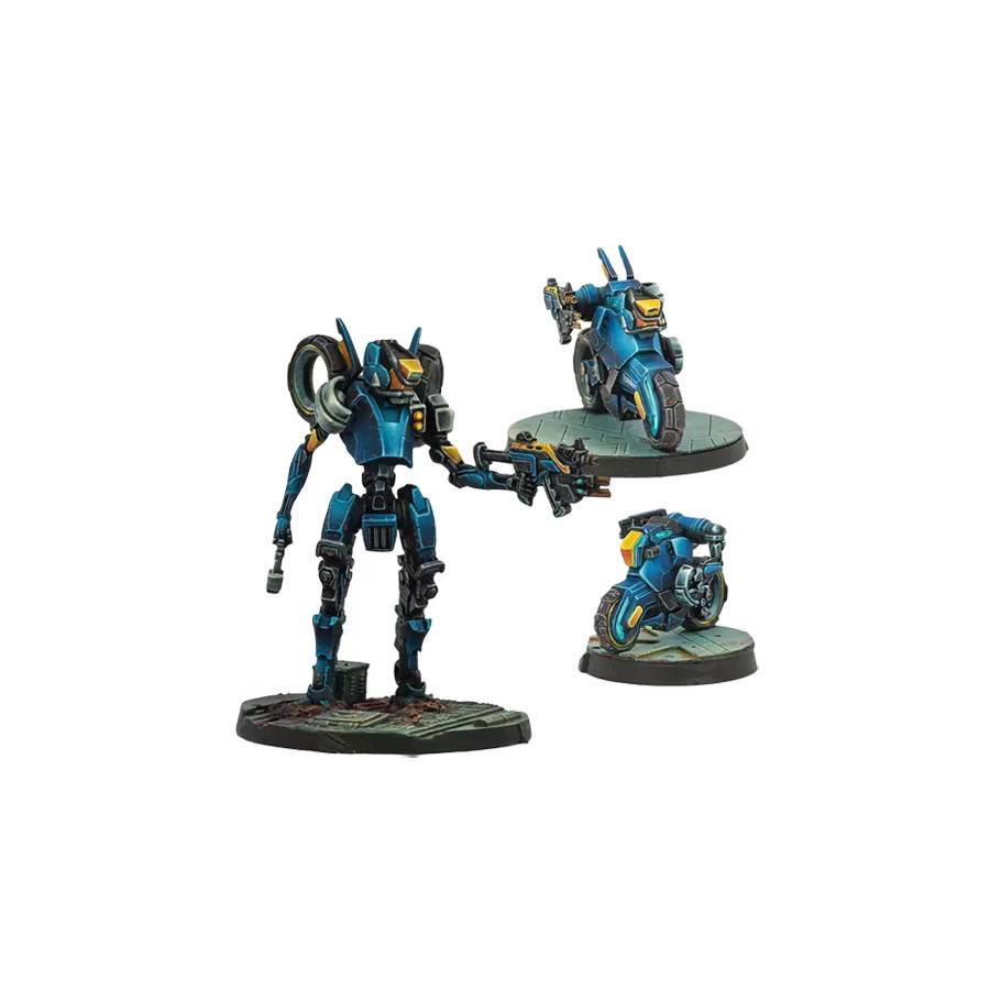 Whether in their fast high mobility form or in their lethal combat form, working solo or teamed up with their loyal SideBots, the RoadBots embody the law on the roads of frontier territories. A law with a metallic body and armed up to its cyber eyeballs.
