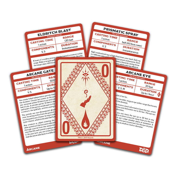 Contains 257 cards for all Sorcerer, Warlock, and Wizard spells from cantrips to level 9.