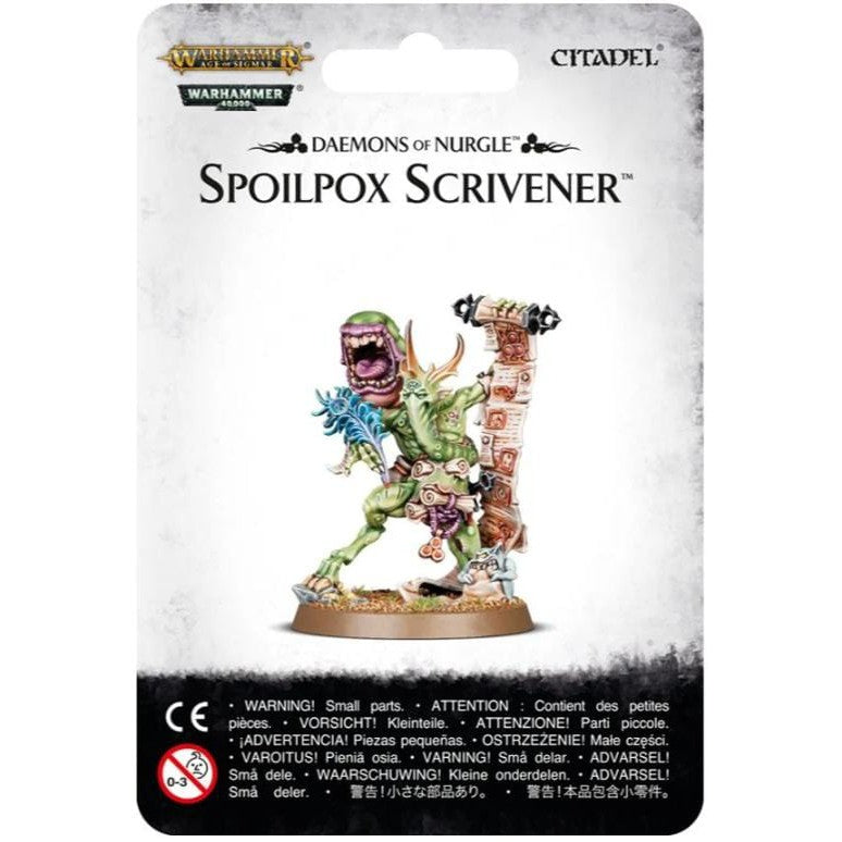 This model comes as 7 components, and is supplied with a Citadel 40mm Round base. The Spoilpox Scrivener can be added to both Warhammer 40,000 and Warhammer Age of Sigmar armies.