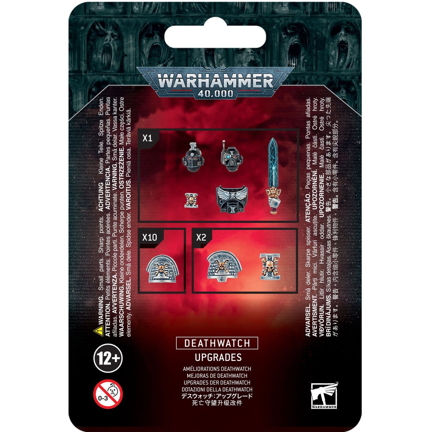 10x Deathwatch Space Marine shoulder pads (left arm)2x Deathwatch Space Marine Terminator shoulder pads (right arm)1x Deathwatch Space Marine Sergeant chest plate2x Deathwatch Space Marine Sergeant helmets1x Deathwatch Space Marine power sword1x Deathwatch backpack icon2x Deathwatch vehicle/walker icons