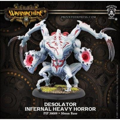 The larger horrors sent forth by the infernals are massive hulks, their strange hides resistant to cutting and resilient against all but the mightiest blows. Desolators are terrifying to behold, their bodies festooned with myriad tumor-like bulbous sacs, each serving as a bladder for caustic liquids this horror unleashes through the maws of its attack limbs to obliterate its foes. Enemies closing with a Desolator are soon shredded by its upper limbs, which end in exceedingly sharp long-bladed claws.