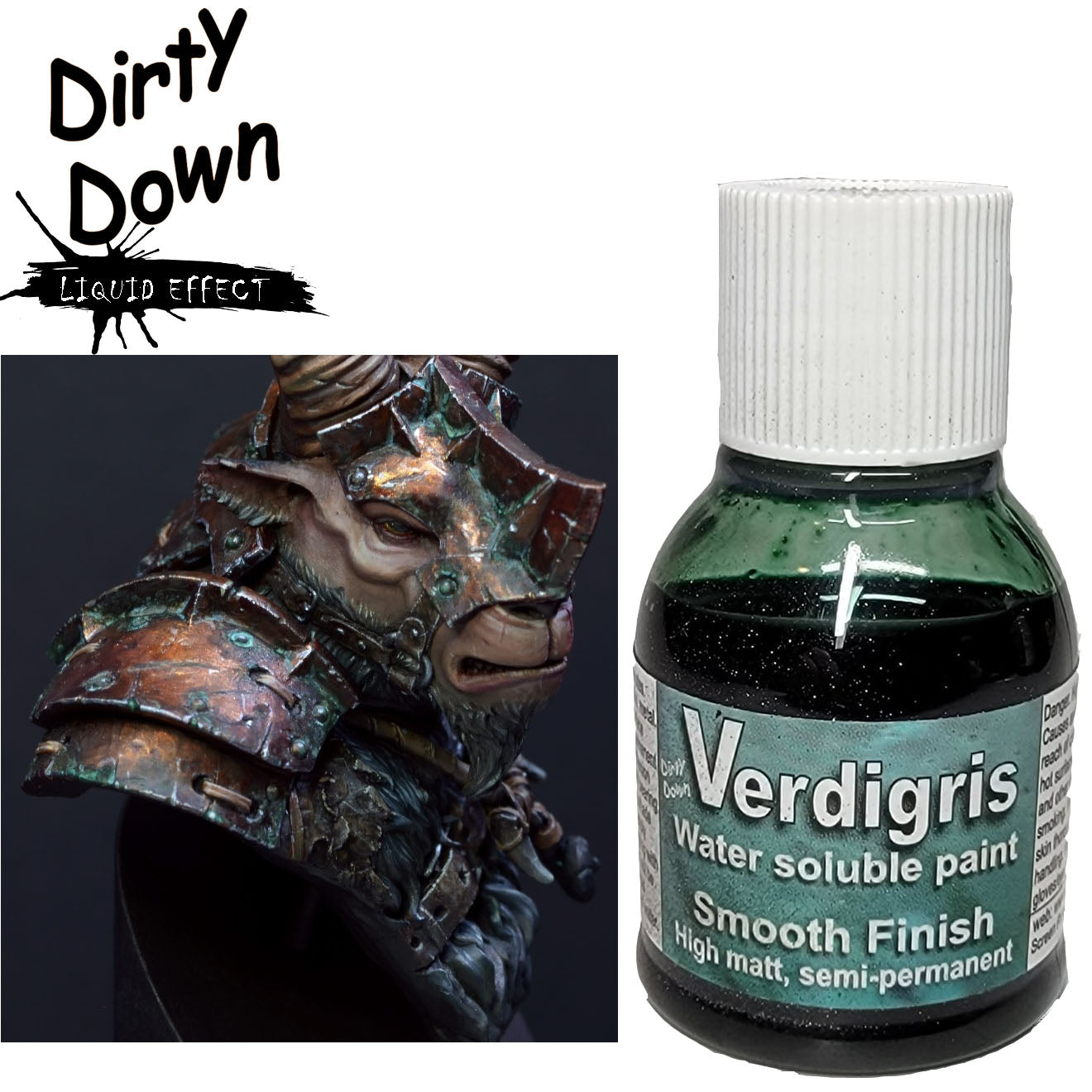 Verdigris paint is water solubleand the effects of painting will be lost by washing in water or by getting wet, but there may still be staining. Do not expose verdigris paint to rain or splashing with water.