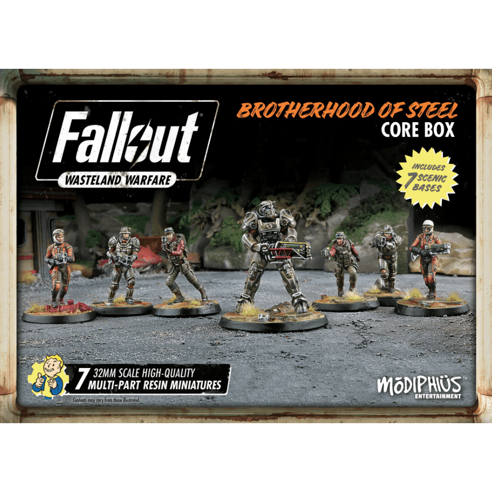 Expand your collection with with these high quality multi-part 32mm scale resin miniatures of 2 Lancers, 2 Field Scribes, 2 Knight Patrol, a T60 Paladin with Gatling Laser and all the cards you need to play as the Brotherhood of Steel faction
