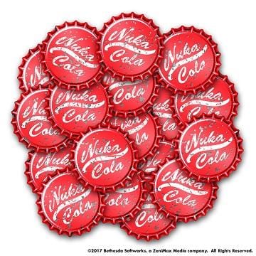 Set of 50 authentic distressed Nuka-Cola bottle caps with sheet of stickers to add game token symbols on the reverse and 1x Bottle Cap Mine Card to use against your enemies! These are actual bottle caps made by a bottling plant with an approved graphic design to resemble authentic Nuka-Cola caps!