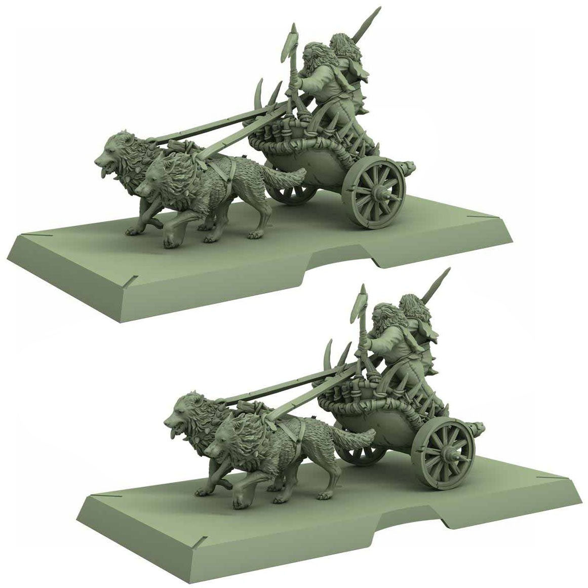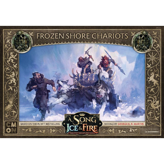The Frozen Shore Chariot Box Set gives Free Folk Players in the A Song of Ice and Fire: Tabletop Miniatures Game a new warmachine for their army. Like cavalry models, this unit can make a free Maneuver Action at the start of its activation, letting it get into position for one of its deadly charges. They hit like an avalanche, getting extra power and taking out concentrated enemy units with ease.