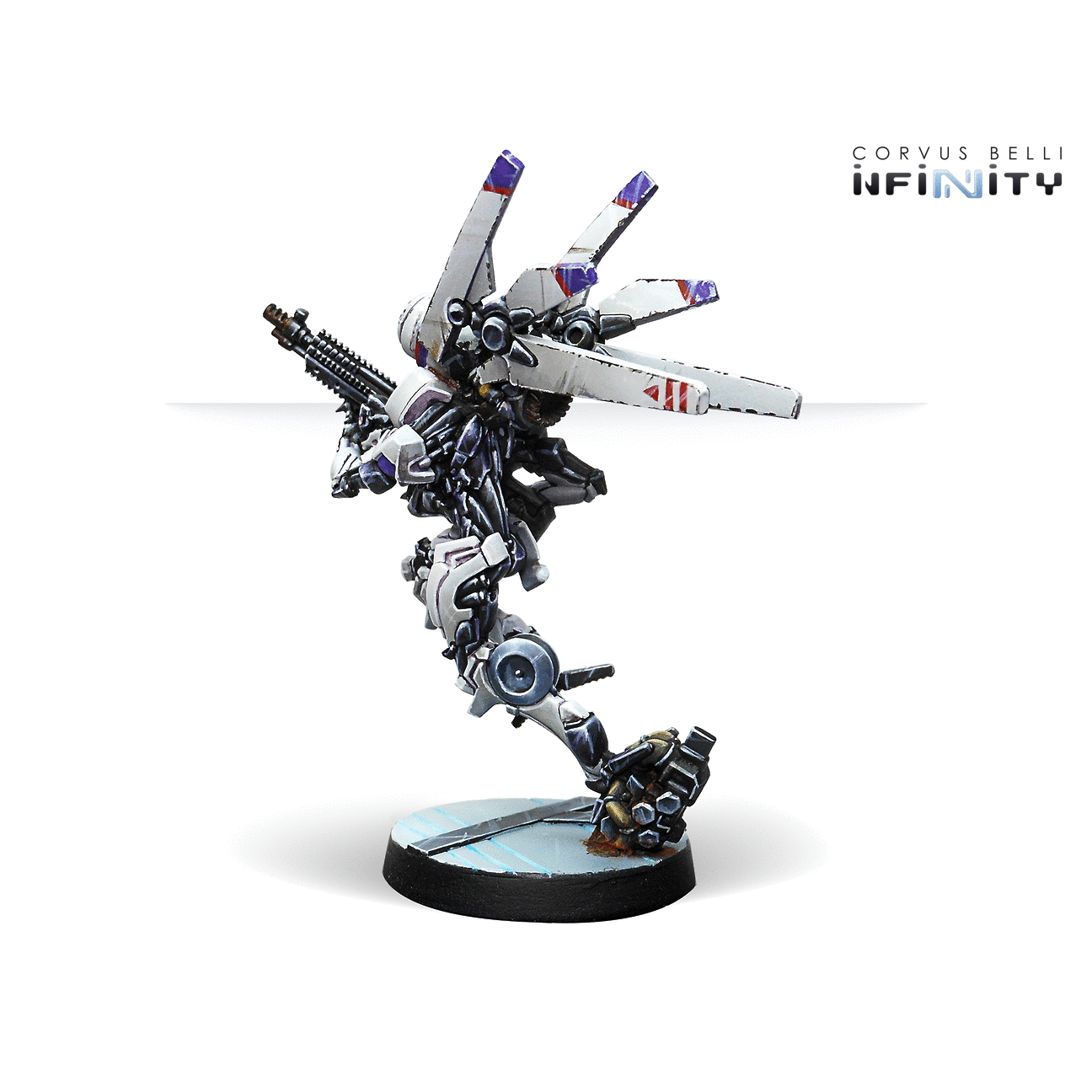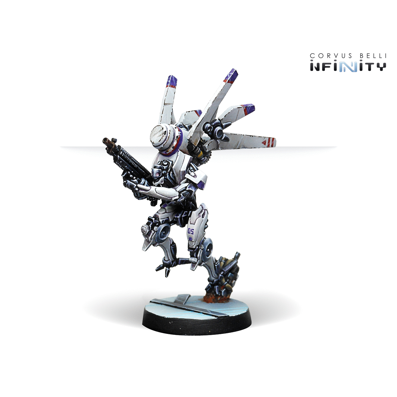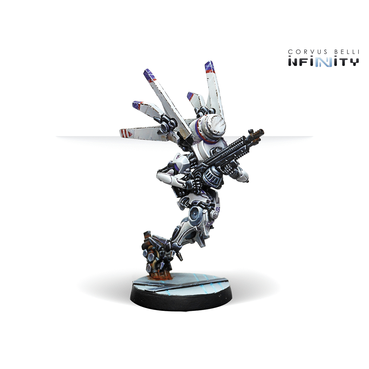 It has orbital and sub-orbital deployment capacity, able to be launched from spaceships, heavy unmanned gliders or a range of other airborne craft. The Garuda’s tactical profile is based on speed. Its rapid deployment to any point of an operation zone is its main feature, but once landed, speed remains a basic offensive/defensive element. Its light structure and protection make the Garuda a fragile remote, but it remains a lethal combatant. Its mimetic system, advanced fire control and great mobility confer the Garuda a high first shot kill probability, increasing its combat lifespan. If a quick kill is needed, the Garuda Tactbot is the best option to swiftly end any combat.