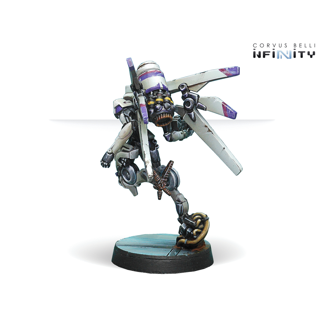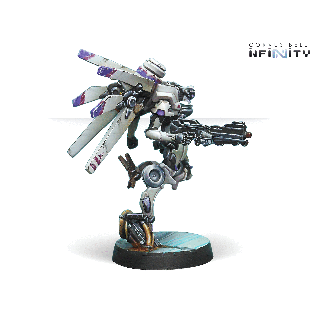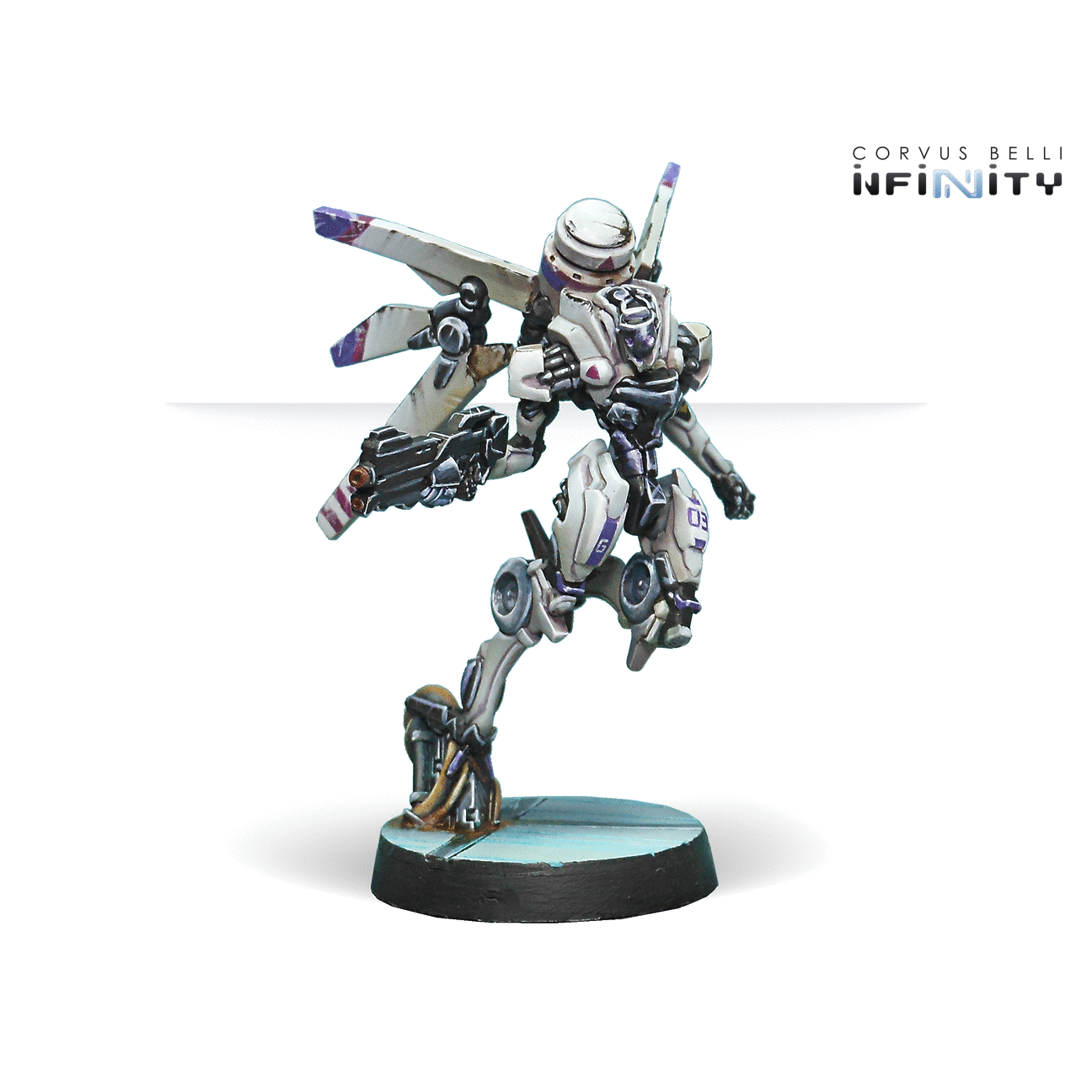 It has orbital and sub-orbital deployment capacity, able to be launched from spaceships, heavy unmanned gliders or a range of other airborne craft. The Garuda’s tactical profile is based on speed. Its rapid deployment to any point of an operation zone is its main feature, but once landed, speed remains a basic offensive/defensive element. Its light structure and protection make the Garuda a fragile remote, but it remains a lethal combatant. Its mimetic system, advanced fire control and great mobility confer the Garuda a high first shot kill probability, increasing its combat lifespan. If a quick kill is needed, the Garuda Tactbot is the best option to swiftly end any combat.