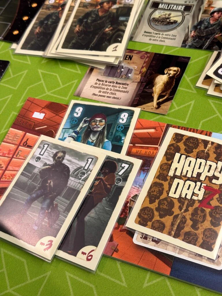 Éradiquez les hordes de zombies et vivez heureux pour toujours ! Happy DayZ - American Dream est un jeu dans lequel vous prenez le rôle de Communautés de Survivants essayant de contrecarrer les attaques de zombies ! Jouez vos cartes de chaque côté du plateau : du côté positif, la carte la plus élevée remporte le pli, du côté négatif, la carte la plus basse. Gagnez des plis pour déclencher les pouvoirs des Factions, évitez les zombies et renvoyez-les dans d'autres Communautés pour limiter les pertes. Jouez les bonnes cartes au bon moment et au bon endroit pour survivre à la Horde ! La boîte est compatible avec Happy DayZ - Woodstock Fever.