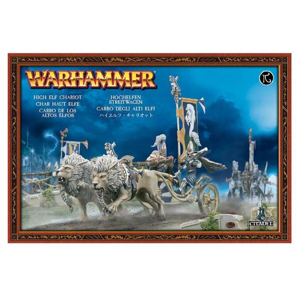 This kit can be assembled as a Tiranoc Chariot, crewed by skilled High Elf Nobles and pulled into battle by Elven Steeds with awesome speed. Alternatively, you can assemble this kit as a Lion Chariot of Chrace, a fearsome war machine, drawn into battle by a pair of ferocious War Lions.