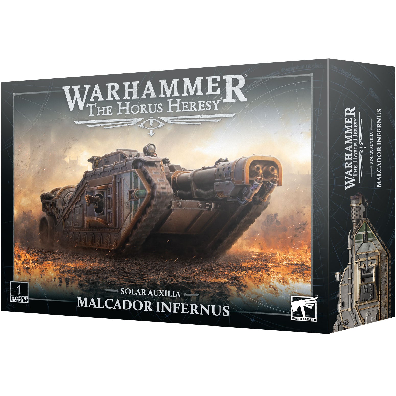 The Malcador Infernus is a Solar Auxilia flamethrower tank with a fuel trailer towed behind it. The massive gout of flames launched from its inferno gun will clear out infantry, light armour and minefields alike, even those protected by the heaviest cover. This plastic kit has numerous choices for sponson and pintle weapons, as well as other optional upgrades, and comes with a 180-piece Solar Auxilia vehicle transfer sheet.*