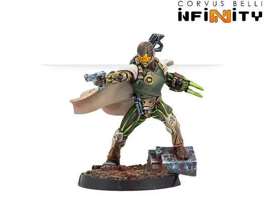 This box includes one miniature of Hussein Al-Djabel from the Haqqislam Army. There is no more lethal impersonator than him, and you will want to include him in your Haqqislam force.