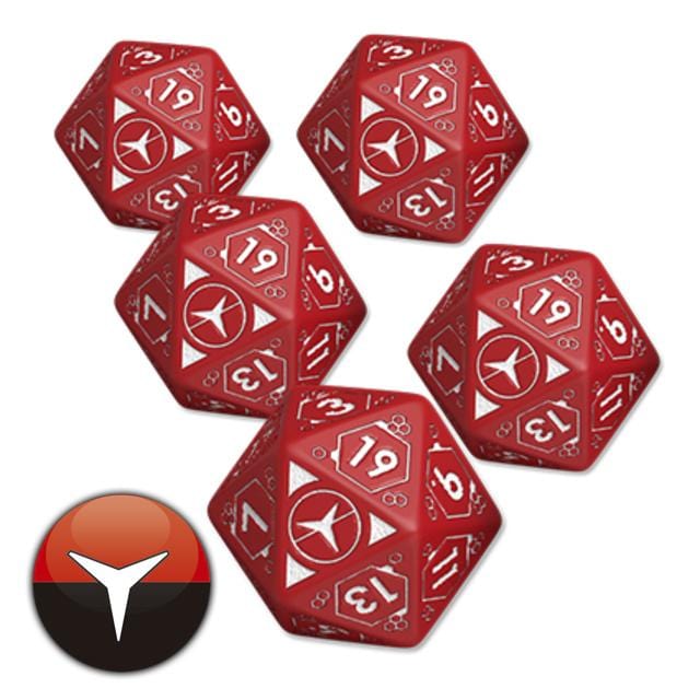 A set of five D20 dice, dedicated to Infinity miniature figure game. Dice set manufactured in Poland by Q WORKSHOP for Corvus Belli, with high quality materials and attention to every detail. This set has been designed for Nomads faction.