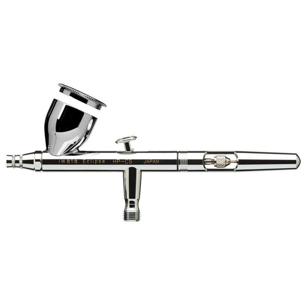 Iwata Eclipse HP-CS Gravity Feed Dual Action Airbrush has a generous 1/3 oz fluid cup with lid that is ideal for color mixing.