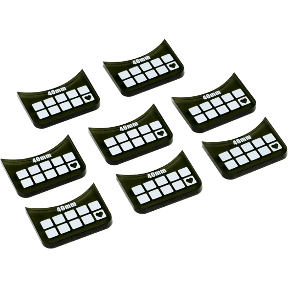 This official set of eight medium-base wound markers (PIP 91083) allows you to easily track damage on medium-based models. The wet- and dry-erase surface keeps wound information in plain sight next to your models.