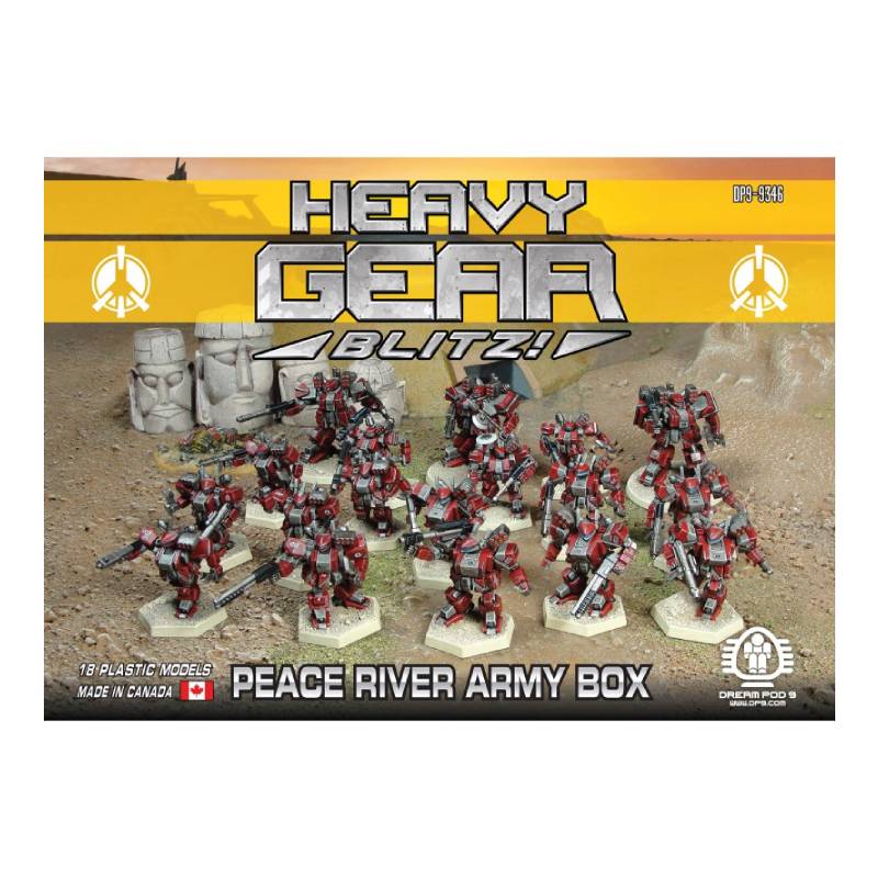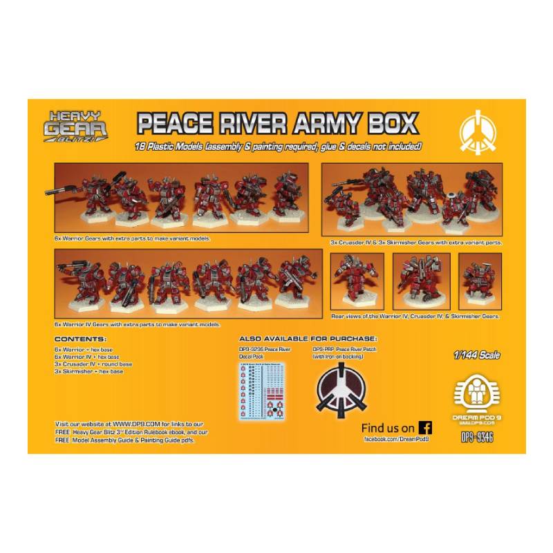 Peace River Plastic Miniatures Army includes 18 plastic miniatures with lots of extra weapons and parts on the sprues, plus black plastic hex or round bases. Painting and Assembly Required, decals not included. Plastics Made in Canada.