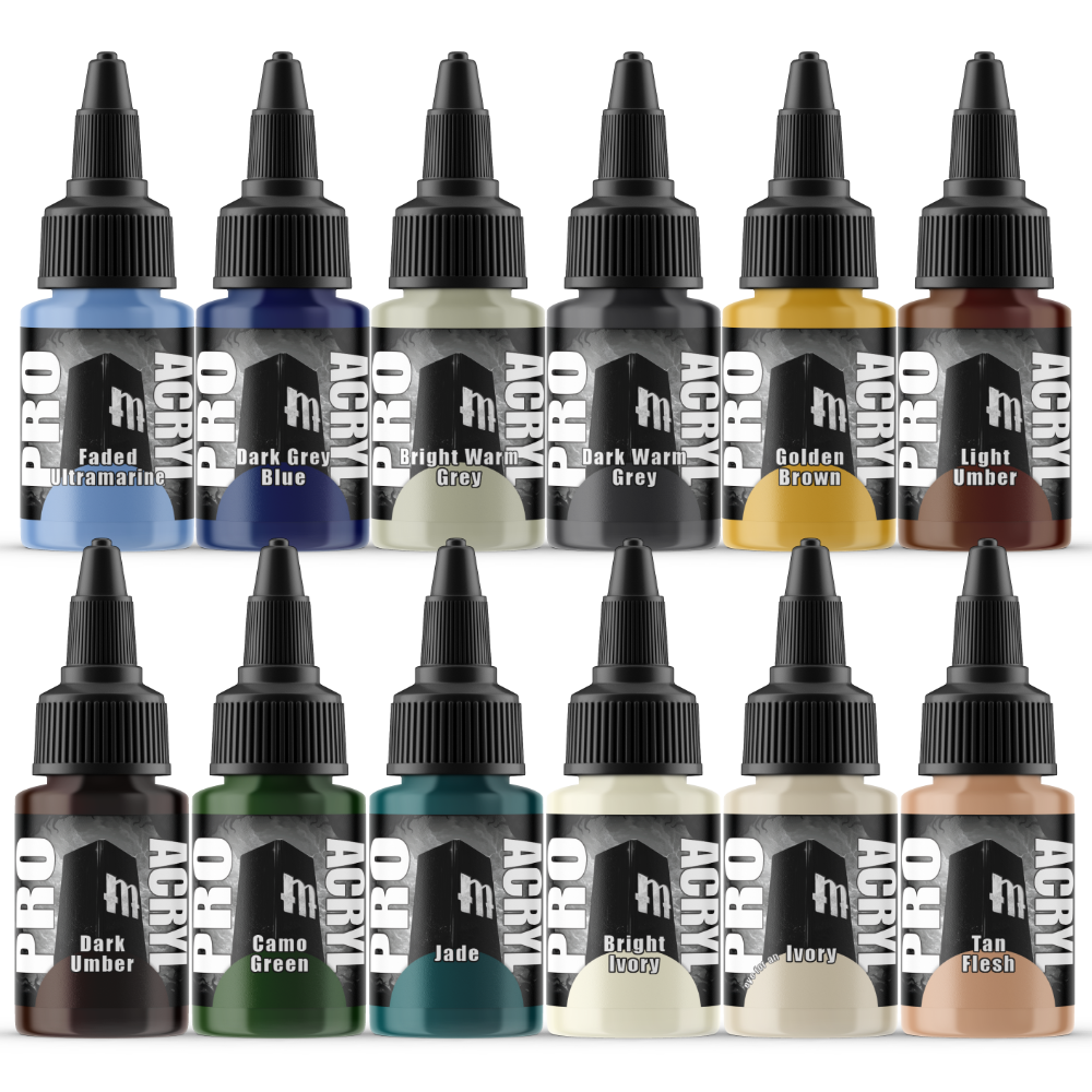 All Monument paints are a premium high-density pigment in superior acrylic mediums. They provide great coverage right out of the bottle, thin evenly to achieve any level of transparency, and dry to a beautiful matte finish. Whether brush or airbrush, they are formulated to provide the same consistency in color and coverage. Pro Acryl paints come with an innovative, no-clog cap that provides the benefits of a dropper bottle and twist cap all in one! All paints come loaded with our signature glass agitators and are sealed for freshness!