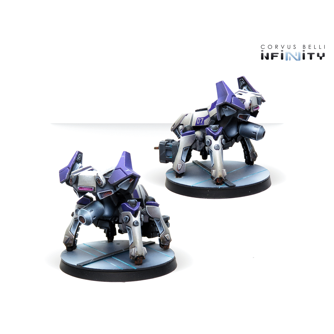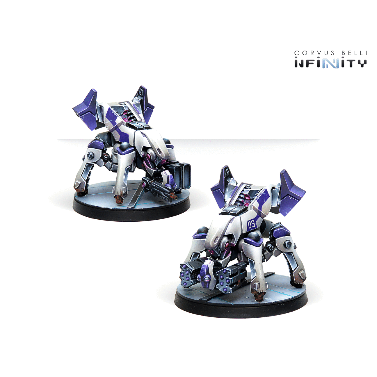 This box includes two miniatures: two Rebots with different weaponry or equipment to suit your needs. The best way to add versatility to your Aleph force from the Operation Blackwind box.