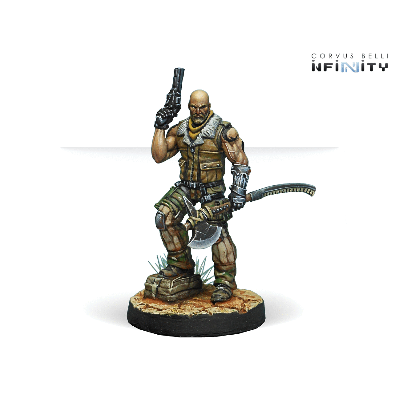 The soldiers loves him on a good day as much as they fear his fits of rage. That he is an intrepid, natural leader is not up for debate. Despite the fact that he always takes the riskiest, most decisive missions, he never wants for volunteers. In truth, he is your standard man of action of the Ariadnan frontier, and as a soldier he should be judged not by his geniality but by his record sheet. Van Zant has been injured countless times, and he has embedded each bullet and piece of shrapnel into the handle of his axe. In the purest Ariadnan officer style, he will often stand in the crossfire, screaming orders at the top of his lungs while lighting a smoke, not (only) because he is a show-off, but because that’s where he can get a better grip on the situation.