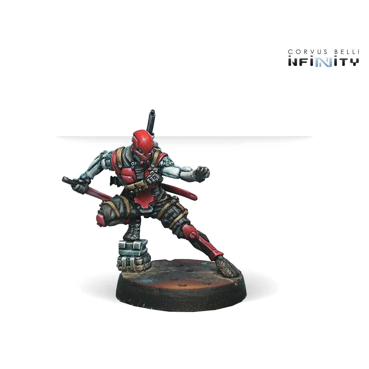 Señor Massacre had a bright career. He was an agile and intuitive fighter, and for quite some time, he was a sure bet. But the fame and drugs made him lose part of his intuition and he made some bets his skills could not cover. Hounded by debts and thugs, he joined the Nomad Military Force and asked for assignment to the frontline where he learned new things and recovered his combat intuition. During the NeoColonial Wars, he was the only commando who survived the boarding and destruction of the Sun Jiao cruiser. As a result, his face was permanently marked by radiation and military assault viruses: a massive abrasion of the skin that cannot be healed, even by the most avant-garde regeneration treatments of Bakunin.