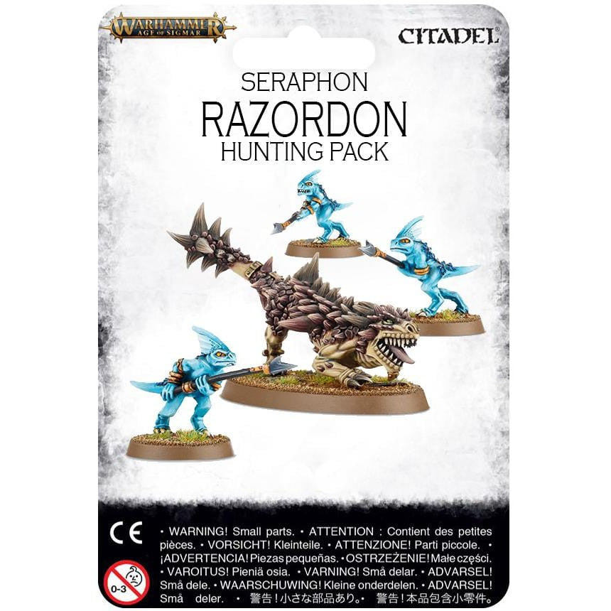 This pack contains one Razordon with three skink handlers, a finely detailed resin cast kit that comes in nine components and is supplied with one Citadel 60x35mm Oval base and three Citadel 25mm Round bases.