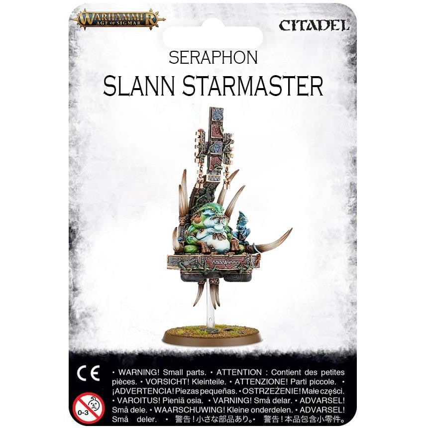This pack contains one Slann Starmaster, a finely detailed resin cast kit that comes in eleven components and is supplied with two long flying stems, and a Citadel 50mm Round base.