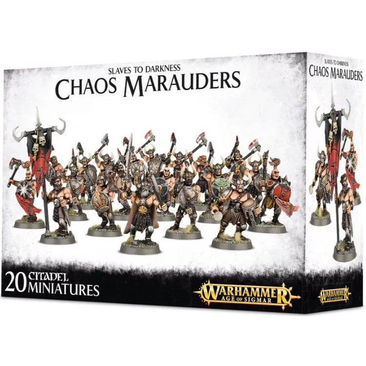 This box set contains twenty multi-part plastic Chaos Marauders which can be assembled with barbarian axes or barbarian flails, and includes options for a chieftain, icon bearer and drummer. Supplied with twenty Citadel 25mm Round bases.