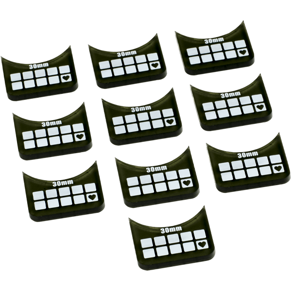 This official set of ten small-base wound markers (PIP 91082) allows you to easily track damage on small-based models. The wet- and dry-erase surface keeps wound information in plain sight next to your models.