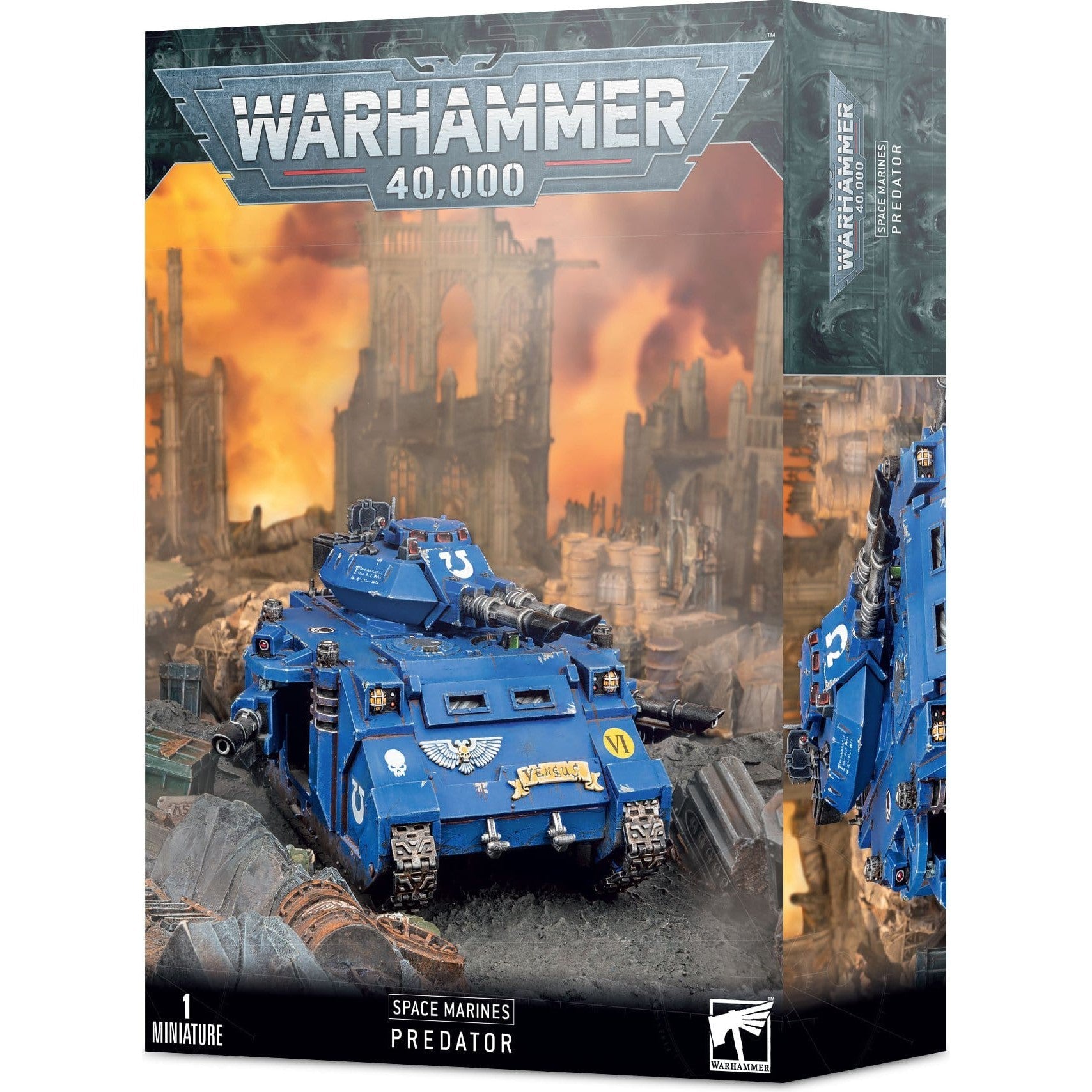 This box set contains one multi-part plastic Space Marine Predator tank. This 94-piece kit includes components to make all of the weapon options available in Codex: Space Marines, including: a twin-linked lascannon, a pair of lascannon sponsons, an autocannon, a pair of heavy bolter sponsons, a storm bolter and a hunter-killer missile.