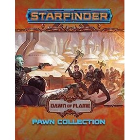 The characters, villains, and starships of the Dawn of Flame Adventure Path come alive on your tabletop with this collection of more than 100 creature and starship pawns, designed for use with the Starfinder Roleplaying Game or any tabletop science fantasy RPG. Printed on sturdy cardstock, each of these double-sided pawns slots into a size-appropriate plastic base from the Starfinder Pawns Base Assortment, making them easy to mix with traditional metal or plastic miniatures. With dozens of distinct images, the Starfinder Dawn of Flame Pawn Collection depicts the enemies and allies from all six adventures of the Dawn of Flame Adventure Path.