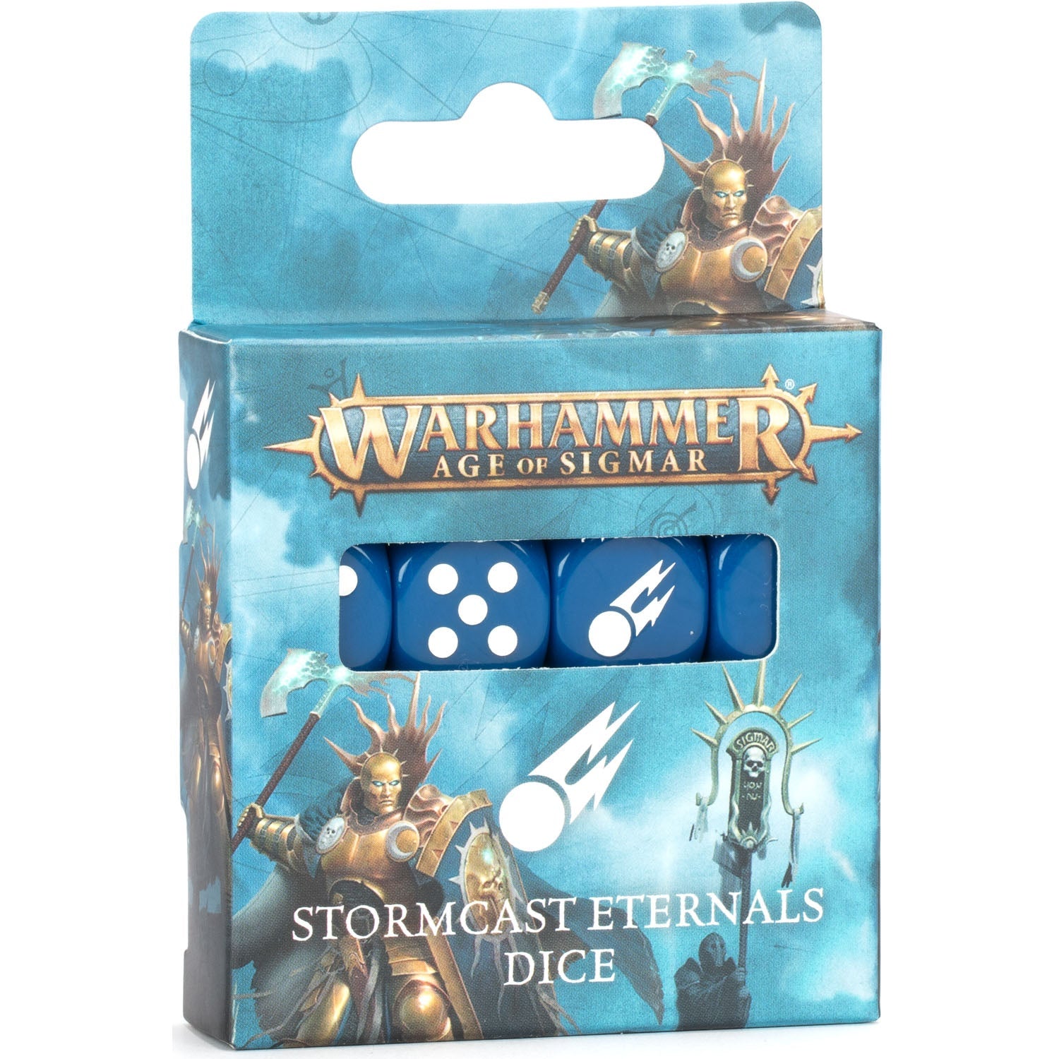 No army is complete without an accompanying set of warscroll cards and dice. This set of dice feature 16 royal blue dice with bright white pips and the twin-tailed comet logo of the Stormcast Eternals on the six face.