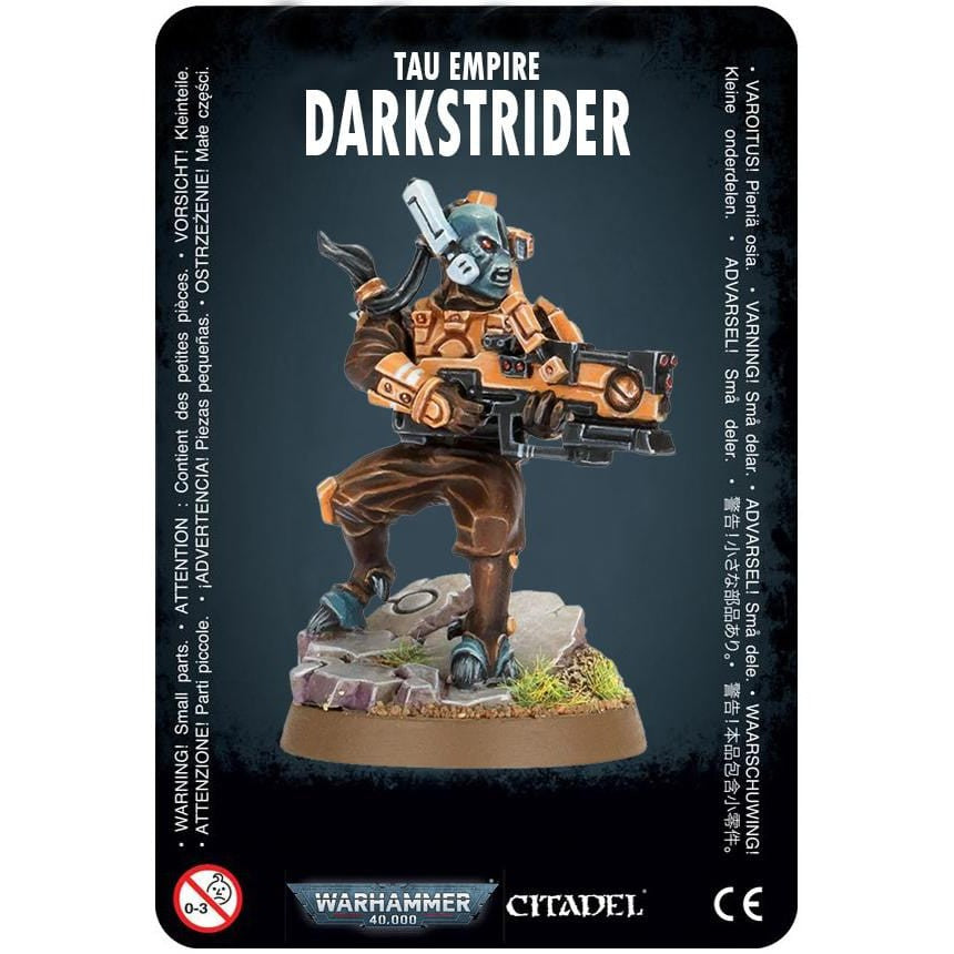 This finely detailed Darkstrider model comes standing on a sculpted base, portraying alien ruins. He wears lighter recon armour that covers his torso, shoulders and forearms. He carries a pulse carbine and exotic T'au items such as blacksun filter and structural analyser. With a fearsome expression on his face, his long hair is tied back, and he is a unique addition to a T'au Empire collection.