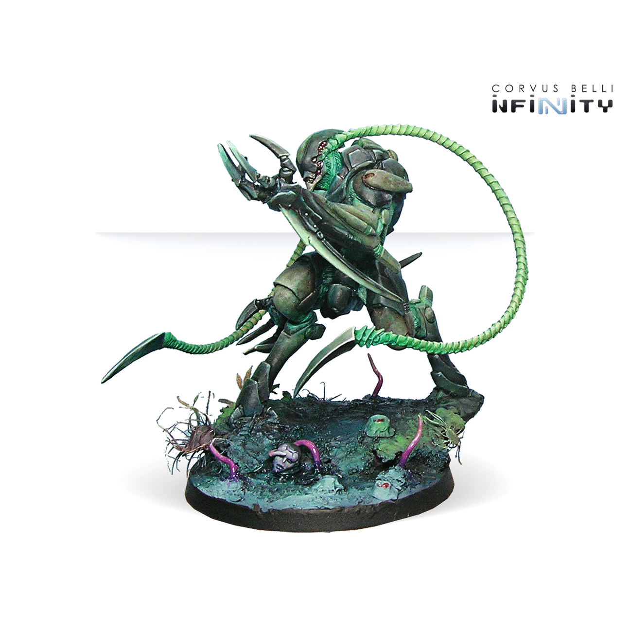 The Anathematics are Charontids comprehensively modified with concealment devices and advanced camouflage systems. They could be defined as a worst nightmare come true for any line soldier – inflexible warriors with stony hearts and shady souls. They are the finest soldiers of the Combined Army’s Heavy Infantry, and one of the favorite receptacles for the EI’s Aspects, as they are well trained and better equipped.