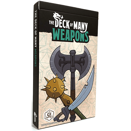 The Deck of Many Weapons is a tool used to assist Game Masters in their 5e role-playing campaigns, freeing them from traditional reference books and allowing them to only bring the reference they need.