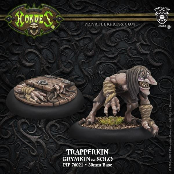 The vile fiends known as trapperkin dwell just out of sight below and behind the magical portals they can create at whim. Be wary, for these grymkin will suddenly throw open an unseen hatch to snatch up victims and drag them back to their hidden lairs. When a trapperkin is near, all must tread carefully—a wrong step could mean vanishing without a trace, stolen away by these deadly lurkers.