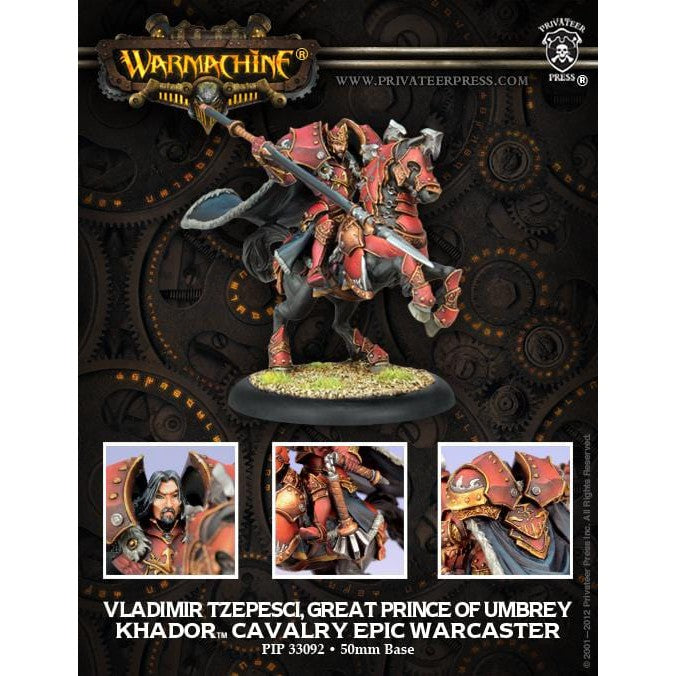 Reclaiming his long-denied birthright, Great Prince Vladimir Tzepesci rides his warhorse Vsada into battle to defend the lands of Umbrey restored to his family. He wields weapons of the ancient Tzepesci horselords, carrying a spear in one hand and the mace Huntsman in the other. Should strength of arms alone prove insufficient, Vladimir lashes out with dark sorceries, the blood of kings that runs in his veins lending him the strength to secure victory.