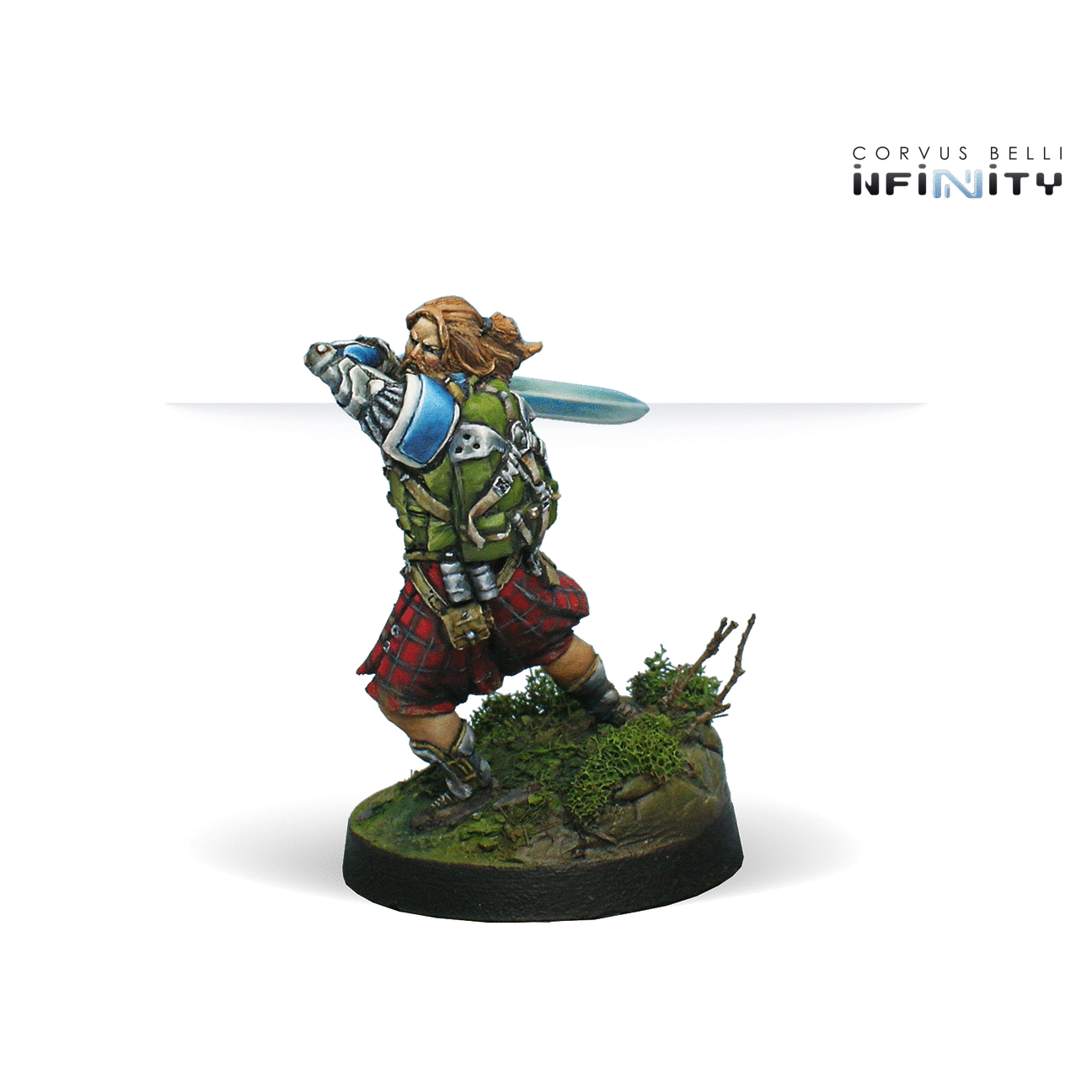 Wallace’s military history is as long as the blade of his Claymore, with highlights in the Fourth Antipode Offensive and in the Commercial Conflicts across the Ariadna system. He has earned his rank and position through determination, bravery and typical Caledonian tenacity. Now, after several years of constant service, he is recognized as a brilliant commander, and a terrible troublemaker. He is capable of extracting the last ounce of spirit and courage from his hardened Highlanders, of whom he feels extraordinarily proud and leads from the front line of any battle.