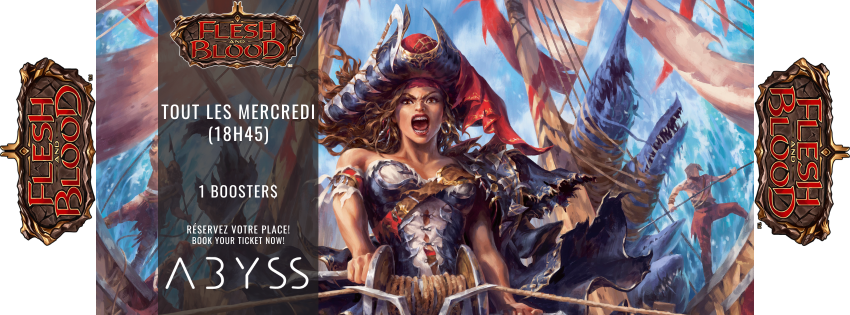 Join us every Wednesday at 6:45 PM for a friendly yet competitive Flesh and Blood evening at Abyss.